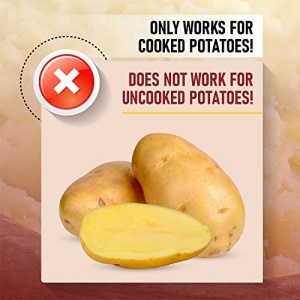 • ● Peel, Rice & Dice With Ease: This handy vegetable ricer and potato presser comes with 3 interchangeable discs that you can use to create many different dishes (note: the ricer does not work with uncooked potatoes); Also included with the ricer for mashed potatoes is a versatile 3-in-1 food peeler knife