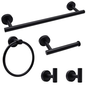 Bathroom Hardware Set, 5/10/20pcs Bathroom Hardware Set, Stainless Steel Bath Hardware Set Including 16″ Hand Towel Bars, Toilet Paper Holders, Towel Rings, Robe Towel Hooks (5pcs, Black)