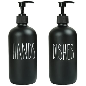 MOMEEMO Soap Dispenser Set 2 Pack, Contains Dish Soap Dispenser and Hand Soap Dispenser. 16 Oz Black Soap Dispenser with Black Plastic Pumps, Perfect for Black Kitchen Decor. (Black)