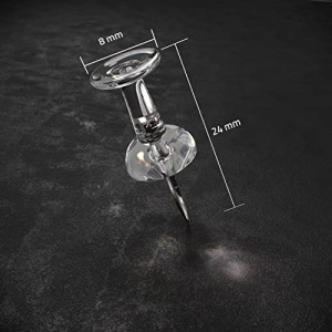 The crystal clear thumb tacks for wall have intelligent design to hold with ease and to keep focus on paper or messages. Stick pins for bulletin boards are sturdy but definitely handle with care while hammering on the heavy duty pushpins for wall, please don’t hit too hard.