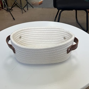 ABenkle Small Woven Basket, Mini Cotton Rope Storage Basket, Tiny White Basket, Shelf Basket, Oval Decorative Toy Dog Cat Basket for Nursery, Kids Room, Empty Gift Basket Baby Basket, 10″ x 6″ x 4″ XS