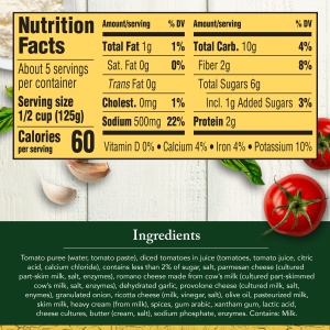 - Made with diced tomatoes and a blend of parmesan, provolone, romano and ricotta cheeses
