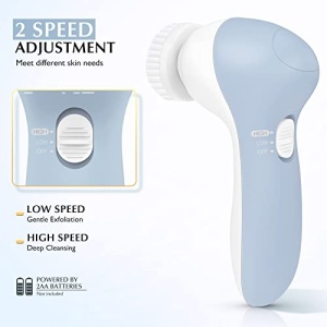 • 100% WATERPROOF AND SAFE DURING SHOWER: This facial exfoliating brush is IPX7 waterproof, making it safe to use in the shower. For the facial cleansing brush to last, we sincerely recommend that you keep the battery compartment dry and do not submerge the entire facial brush in water (Does not include 2 AA batteries)