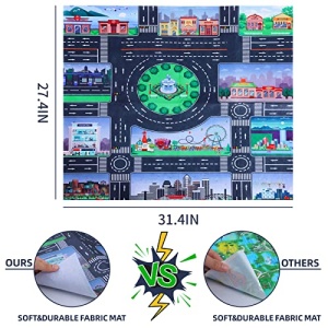 - 【SIMULATION SCENE PLAY MAT】- The play mat is made of soft non-woven fabric instead of thin PVC, eco-friendly, foldable for storage, increases friction with the ground and makes the vehicle drive smoothly on it. The play mat shows us a colorful life scenes, including roads, buildings, hospitals, restaurants, etc. The pattern is clear and not easy to fade. It is large enough to allow 2 to 4 kids players to spend hours of playful fun together. Play mat size: 31.4″x27.4″.