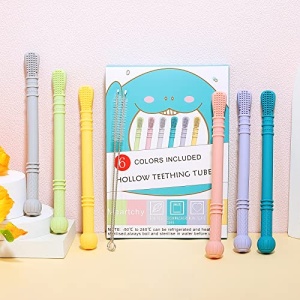 • 【EASY TO USE】We offer teether tubes in 6 different colors for easy replacement and daily use. And our teething tube is designed to be very lightweight, making it easy for your baby to hold and chew.