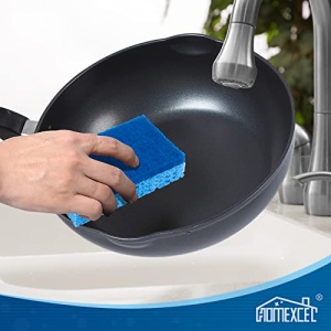 • NON-SCRATCH CLEANING:These sponges are totally safe to use on non-stick cookware,glass countertops, showers, and many other surfaces. One side to scrub without scratch,and the other light blue side to wipe away dirt and particles.