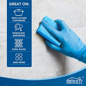 • VERSATILE CLEANING SPONGES:It works well on cleaning bowls, dishes, pots and pans, but also great on oven racks, stoves, garage, kitchen, bathroom and many other places.You will aways find them valuable and useful.