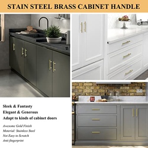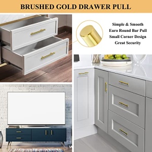 - 💫【Widely Compatible】- Suitable for different styles of cabinets, use these gold hardware to decorate your cabinets or update some old furniture,bring you a modern look. Very stylish and unique. Ideal for kitchen, bathroom, bedroom, cabinet, drawer, dresser, door, cupboard, wardrobe, closet. Smooth and clear stainless steel handles, great helper to pull out drawer soon and conveniently.