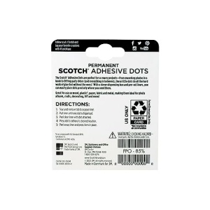 Details: Scotch Adhesive Dots are perfect for sticking embellishments to paper, wood, metal, foam and other surfaces. Great for card making and scrapbooking. The “no touch” dispenser keeps the dots free from oils, light and dirt.