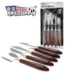 U.S. Art Supply 5-Piece Artist Stainless Steel Palette Knife Set – Wood Hande Flexible Spatula Painting Knives for Color Mixing Spreading, Applying Oil, Acrylic, Epoxy, Pouring Paint on Canvases, Cake